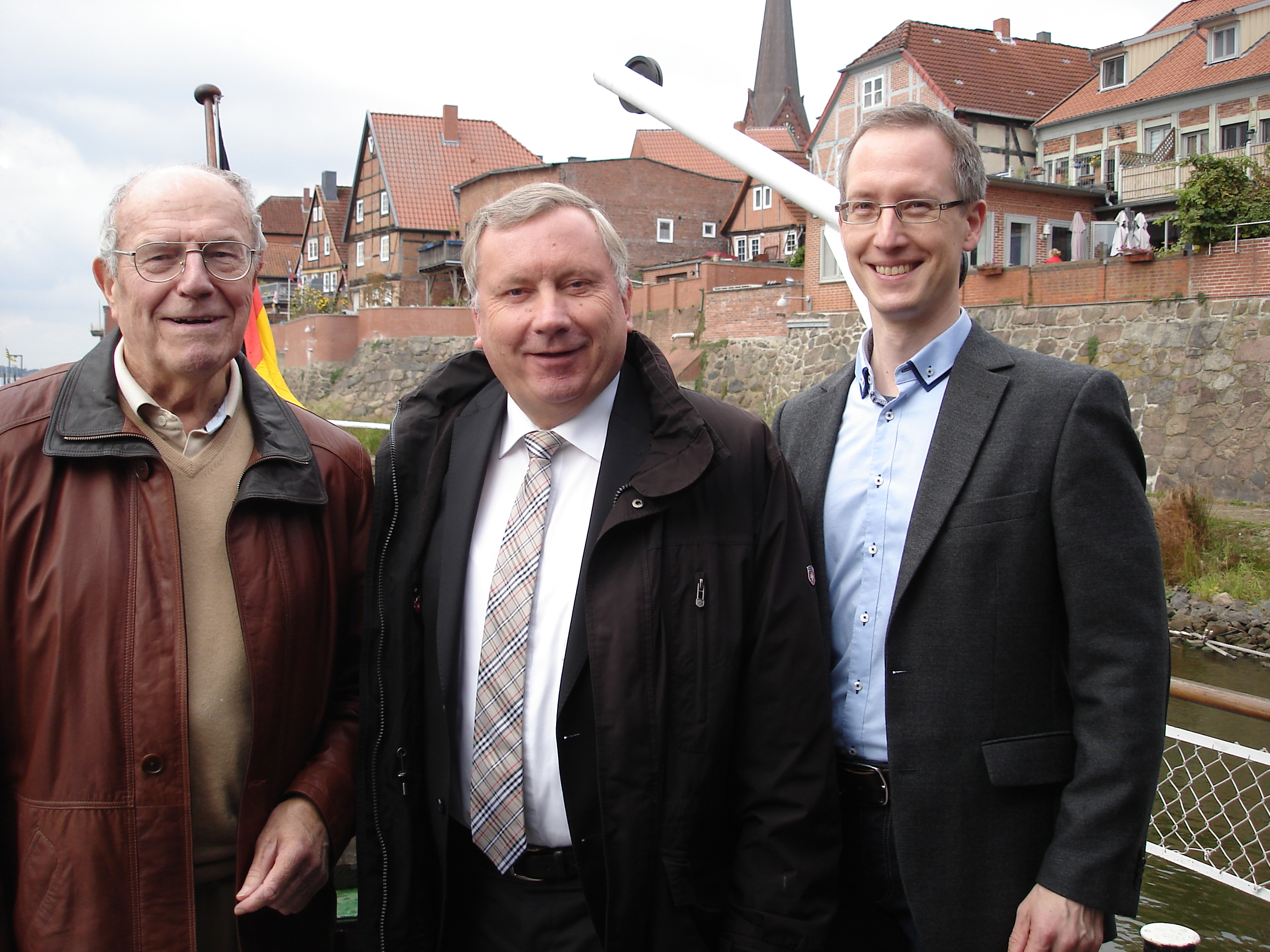 Wer wollte nicht schon immer mit einem alten Dampfschiff in See stechen? Diese Gelegenheit nutzte die CDU Ahrensburg am 3. Oktober und feierte damit den Tag der deutschen Einheit. Von Lauenburg aus ging es zwar nicht auf die hohe See, doch zumindest die Elbe hinauf. Auf der traditionellen 3-(Bundes)-Länder-Fahrt passierte das Ausflugsschiff Schleswig- Holstein, Niedersachsen und Mecklenburg-Vorpommern. In diesem Jahr begleitete der CDU Bundestagsabgeordnete Norbert Brackmann die Reisegruppe und auch das Schiff selbst war eine Besonderheit.