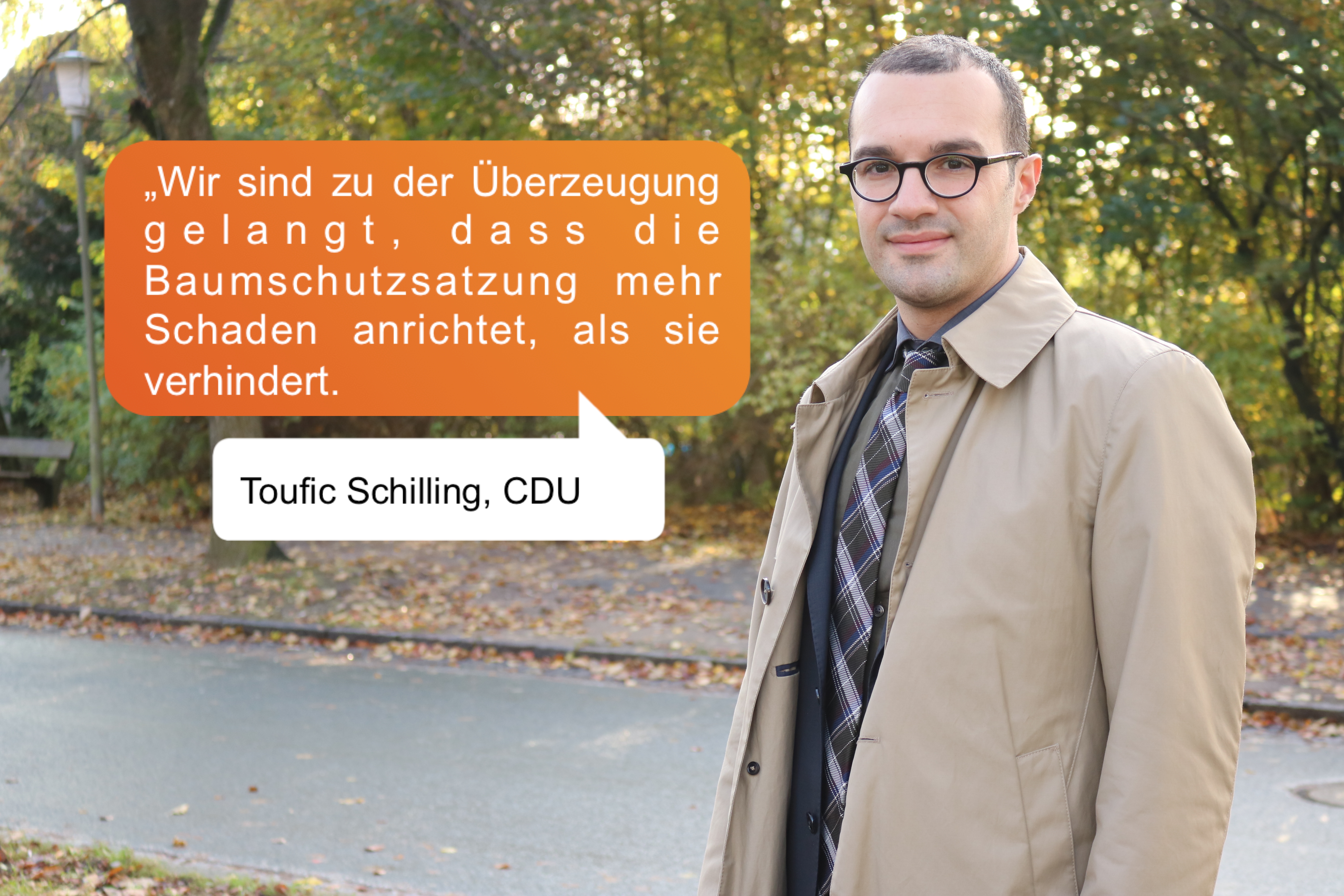 „Ich bedauere sehr, dass die Verwaltung nicht bereit ist, sinnvolle Erleichterungen mitzutragen. Hinsichtlich unseres als Kompromiss erarbeiteten Vorschlags teile ich die Rechtsauffassung der Verwaltung nicht.“ erklärt Toufic Schilling, der für die CDU (als Bürgerliches Mitglied) im Umweltausschuss sitzt.