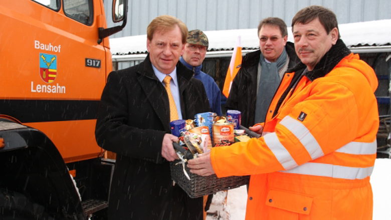 Überraschungen in Sachen Schneefall und Verwehungen lieben die Mitarbeiter der Bauhöfe in ostholsteins Städten und Gemeinden eigentlich gar nicht mehr. Über den überraschenden Besuch des Bundestagsabgeordneten Ingo Gädechens, freuten sich die Mitarbeiter in Lensahn jedoch sehr. Gemeinsam mit dem Bürgermeister und Amtsvorsteher Klaus Winter schaute Gädechens am frühen Vormittag vorbei, um sich aus erster Hand informieren zu lassen.