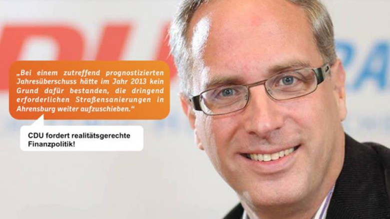 Nun gut, könnte man meinen, besser so als andersherum. Ja, wenn da nichtdie unterlassenen Straßensanierungen wären. Bei einem zutreffend prognostizierten Jahresüberschuss hätte im Jahr 2013 kein Grund dafür bestanden, die dringend erforderlichen Straßensanierungen in Ahrensburg weiter aufzuschieben. So jedoch weisen unsere Straßen heute noch die Schlaglöcher auf, die im Jahr 2013 schon längst hätten beseitig werden können. Nur gut, dass in diesen Jahren zumindest die Cafeteria der Stormarnschule und die Turnhalle der Grundschule Am Hagen gebaut worden sind, obwohl der Bürgermeister aufgrund seiner falschen Haushaltsprognosen davon dringend abgeraten hatte.