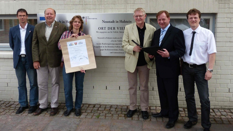 Die Stadt sei stolz über die Auszeichnung ein "Ort der Vielfalt" zu sein. Er betonte, dass das Bundesprogramm sei von Beginn an in der Stadt von allen Parteien, der Verwaltung, Schulen und Vereinen unterstützt worden. Durch einen harten Kerns von 40-50 ehrenamtlich Aktiven und weiteren Unterstützern lebe das Projekt, so der Bürgermeister.
