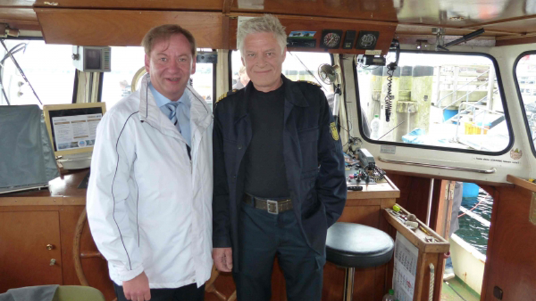 Dabei gab es ein herzliches Wiedersehn mit Rüdiger Joswig, alias Kapitän Ehlers, der so wie der CDU-Bundestagsabgeordnete Aalritter in Haffkrug ist. Aber auch das Gespräch mit dem Schauspieler Timothy Boldt war locker und handelte von den anstehenden Drehinhalten der sicherlich interessanten nächsten Folge der Vorabendserie die Küstenwache.