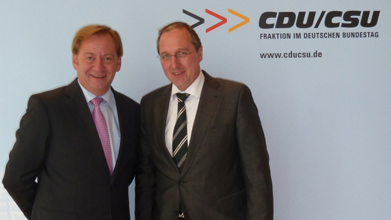 Berlin. Unter dem Titel "Zukunftsstandort Deutschland" - verbunden mit der Frage: "Welche Infrastruktur brauchen wir?" hatte die CDU/CSU-Bundestagsfraktion Fachexperten zu einem Kongress nach Berlin eingeladen. Als Referent war auch der schleswig-holsteinische Wirtschaftsminister und CDU-Spitzenkandidat Jost de Jager dabei, der über notwendige Infrastrukturmaßnamen im nördlichsten Bundesland Schleswig-Holstein referierte. Ingo Gädechens, MdB freute sich über den Besuch aus Kiel: "Minister de Jager hat hier in Berlin einen überzeugenden und kompetenten Eindruck hinterlassen!"