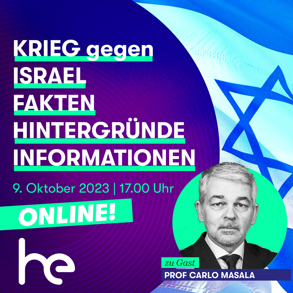 Aufgrund der aktuellen Ereignisse in Israel ist am Montag, den 9. Oktober, um 17 Uhr der renommierte Politikwissenschaftler Professor Carlo Masala live zugeschaltet. Er wird Hintergründe und Fakten erläutern und die unübersichtliche Gemengelage sortieren und analysieren.